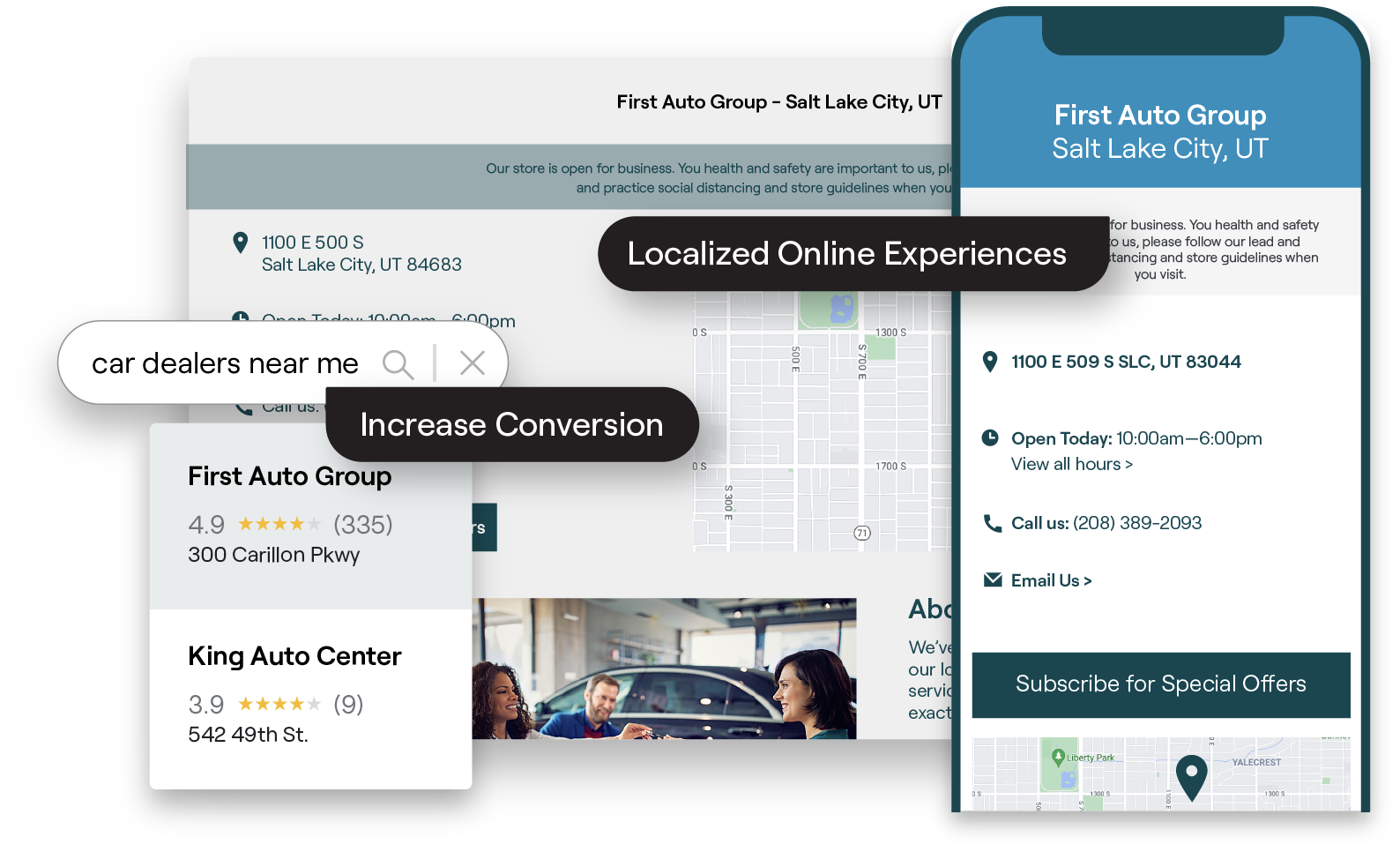 Designed to Convert: Showcase location-specific hours, services, reviews, and contact info that drive action.